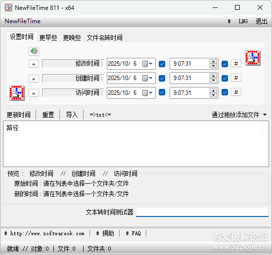 尤其是在我们需要对大批量文件/文件夹进行时间操作修改时间戳的时候,NewFileTime绝对是一款值得信赖的工具。