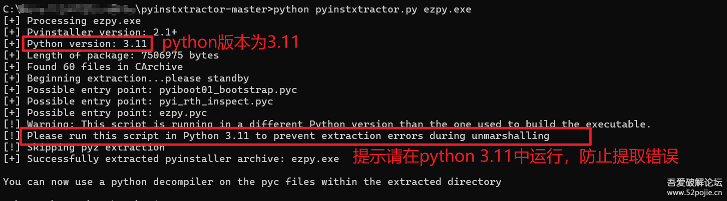 自己的python版本需要与程序的python版本一样,否则extracted文件夹中就是一片空白